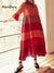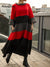 Women's Round Neck 3/4 Sleeves Contrast Color Printed Casual Loose Cotton and Linen Dress