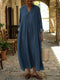 Women's Solid Color Lapel Long-sleeved Casual Loose Linen Dress