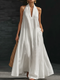 Women's Solid Color V-neck 3/4 Sleeve Casual Loose Cotton And Linen Dress