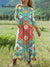 Women's Boho Boat-Shaped Collar Floral Print Stretch Dress