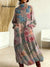 Women's Vintage Flower Art Print Casual Cotton Knitted Dress