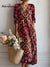 Women's Boho Boat-Shaped Collar Floral Print Stretch Dress
