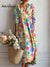 Women's Round Neck Long Sleeve Plaid Print Casual Cotton A-Line Dress