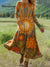 Women's Vintage Flower Art Print Long-sleeved Dress