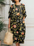 Women's Vintage Flower Art Print Pocket Cotton Dress