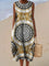Women's Vintage Geometry Flower Pattern Art Print Casual Cotton Denim Dress