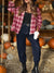 Women's Vintage Check Print Lapel Zip-Up Jacket