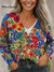 Simple Floral Multicolor Print Buttoned V-neck Cardigan Sweater