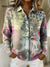 Women's Flowers Retro Splicing Gradient Pattern Print Cowl Neck Sweater