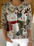 Women's Vintage Christmas Cute Cats Art Print Casual Peter Pan Collar 3/4 Sleeve Sweater