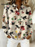 Women's Vintage Cozy Christmas Black Cat Art Print Casual Sweater