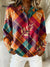 Women's Vintage Cozy Plaid Art Print Casual Sweater