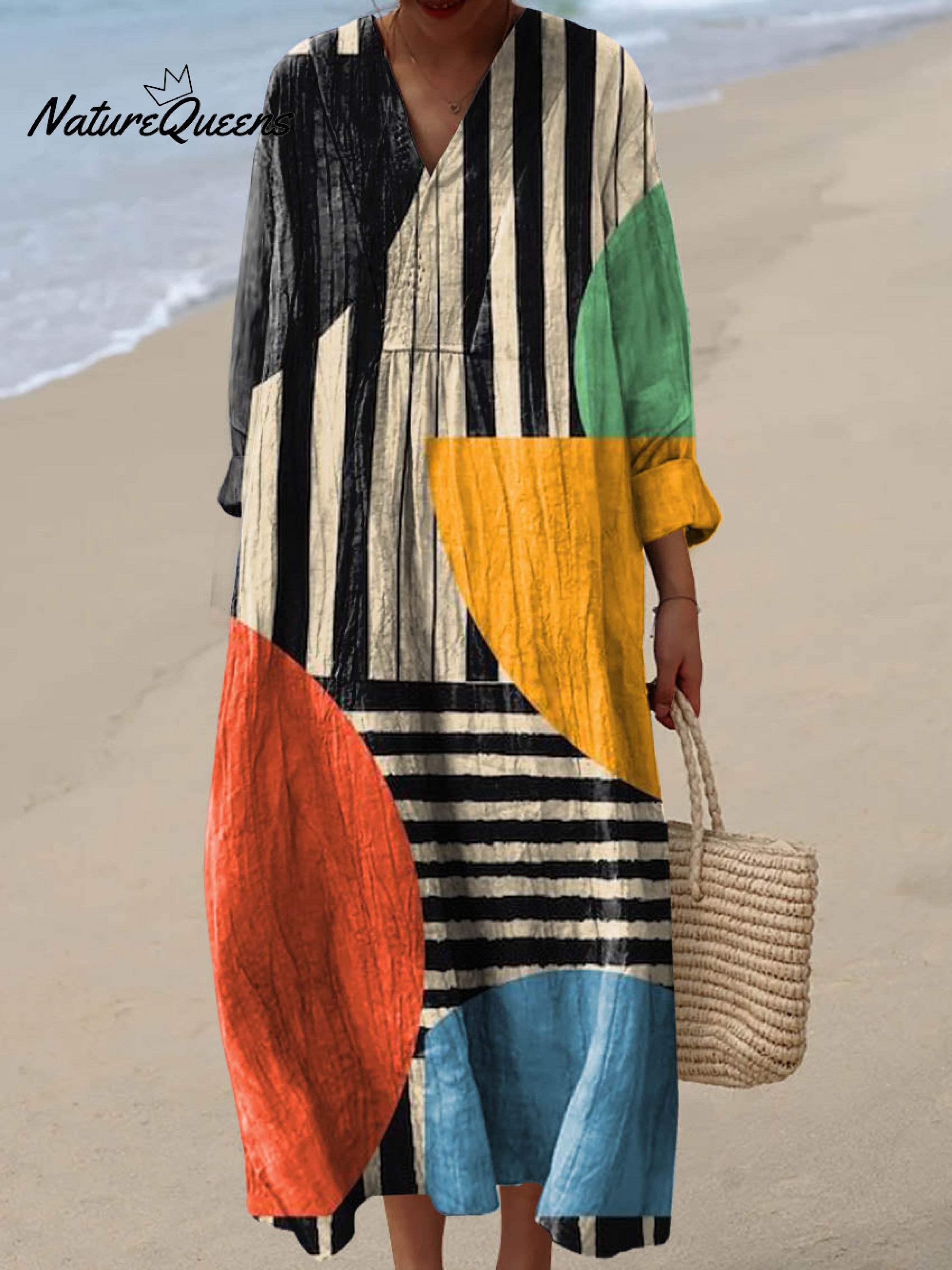 Women's Abstract Geometric Pattern Art Print Cotton Dress