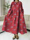 Women's Plaid And Bowknot Decorative Patterns Casual Peter Pan Collar Long Sleeve Dress