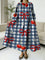 Women's Plaid Bow Cherries And Stars Decorative Pattern Casual Peter Pan Collar Long Sleeve Dress