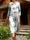 Women's Retro-style Print Shirt Collar Long Sleeve Casual Loose Cotton Dress