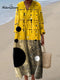 Women's Vintage Flower Art Print Linen Pocket Tunic Dress