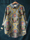 Boughs And Robin Birds Pattern Printed Women's Casual Cotton And Linen Shirt