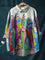 Funny Colorful Sardine Fish Art Printed Women's Casual Cotton And Linen Shirt