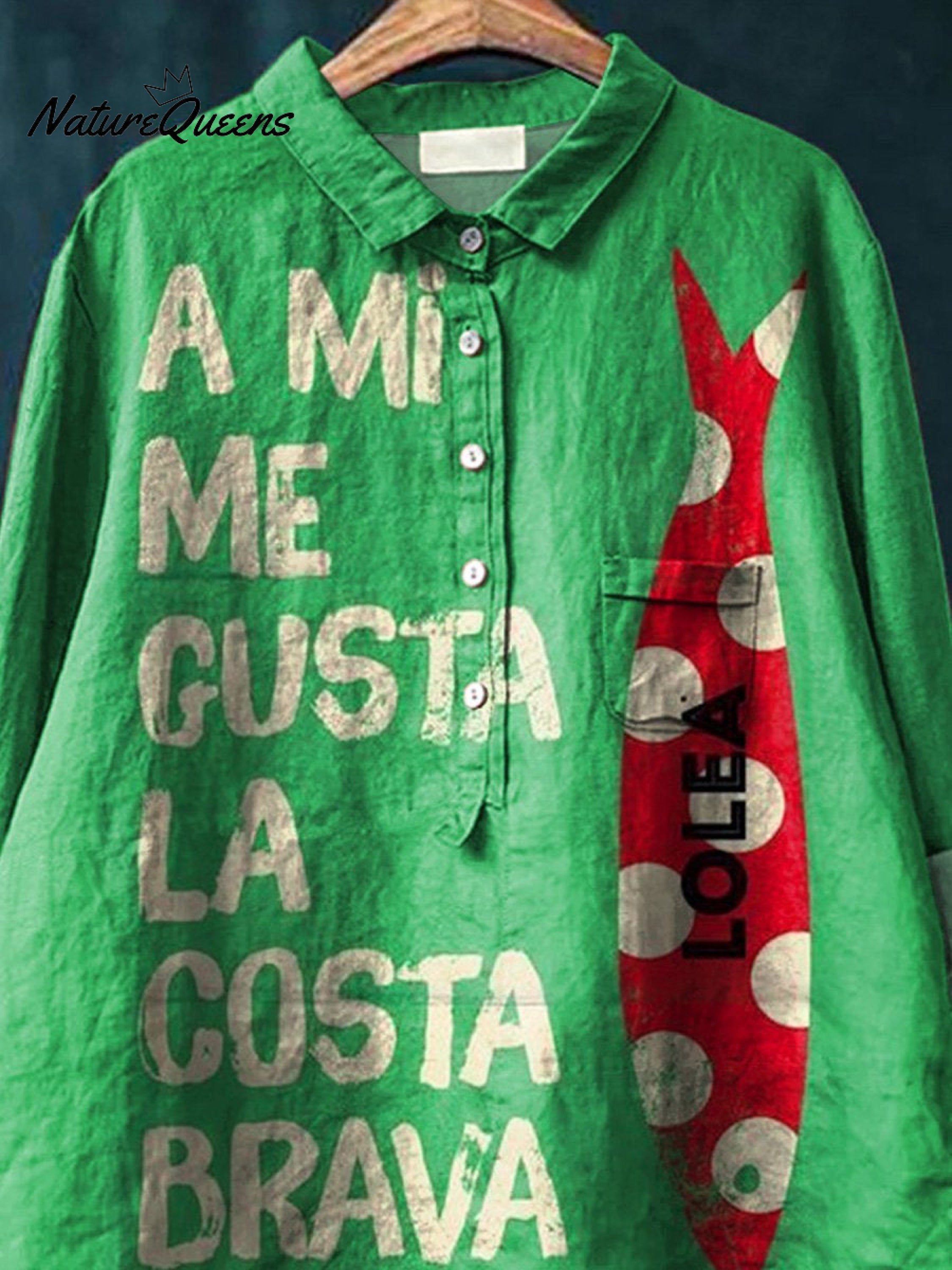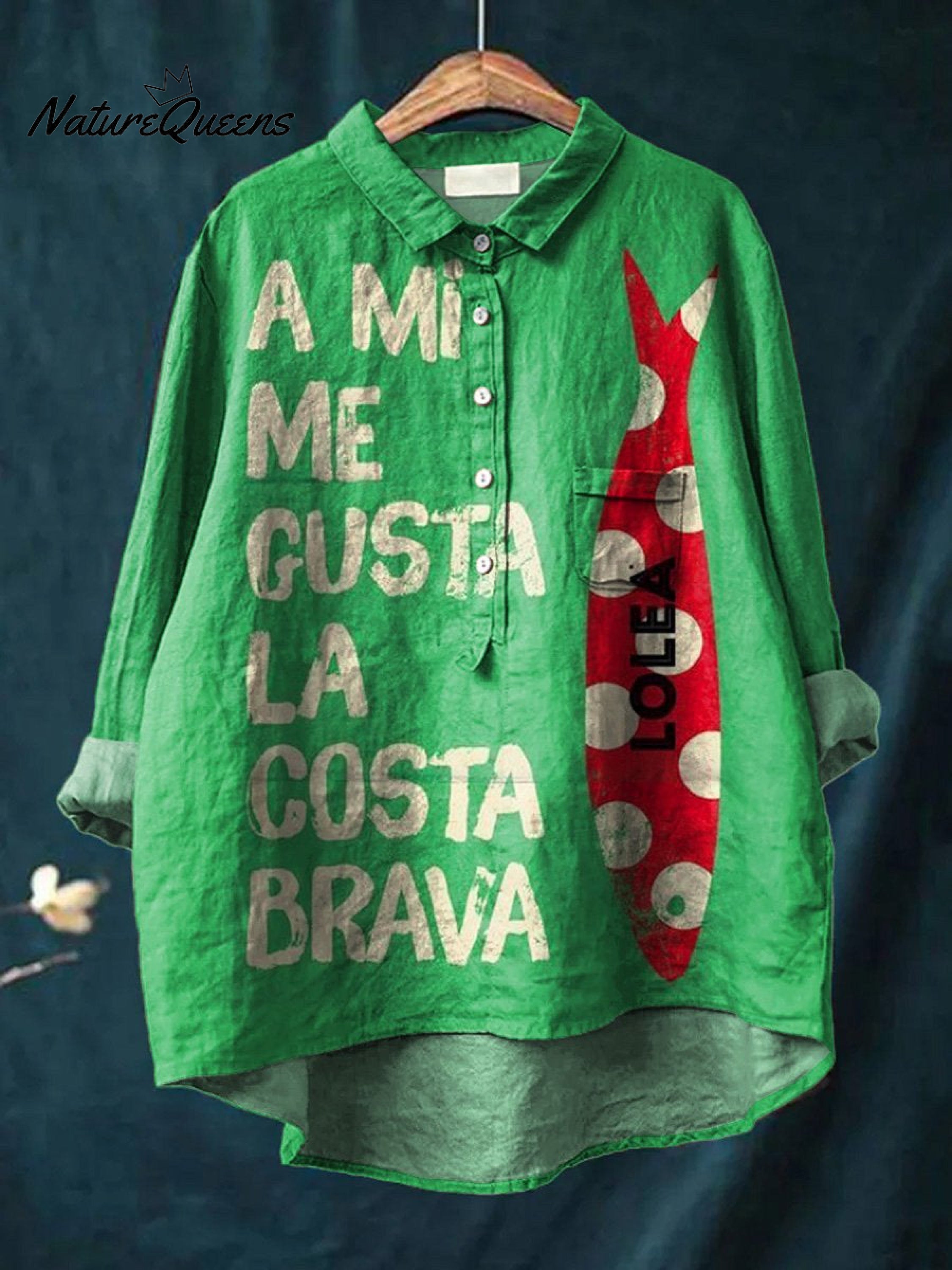 Sardine Fish Art Printed Women's Casual Cotton And Linen Shirt