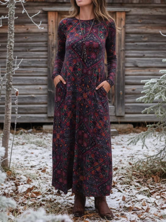 Boho Mandala Patchwork Pattern Soft Knit Dress