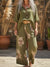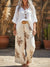 Button-down Top And Printed Wide-leg Trousers Linen Two-piece Set