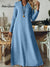 Women's Solid Color Shirt Collar Short Sleeve Loose A-Line Denim Dress