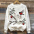 Christmas Cat & Bird Embroidered Women's Soft Plush Sweater