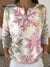 Christmas Snowflakes Leaves Fruit Print Henley Neck Sparkling Sequin Sweater