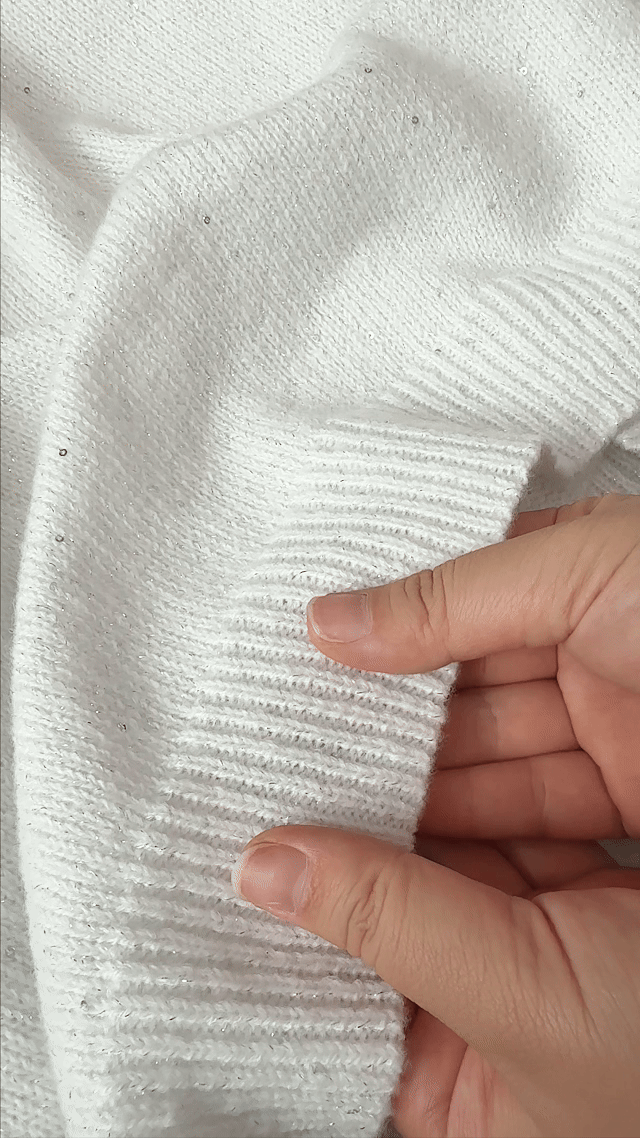 The yarn of this sweater is delicate and soft, and it has a sequined glitter effect, which looks elegant and fashionable.