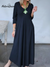 Comfortable Solid Color V-neck Stretch Knit A-line Dress