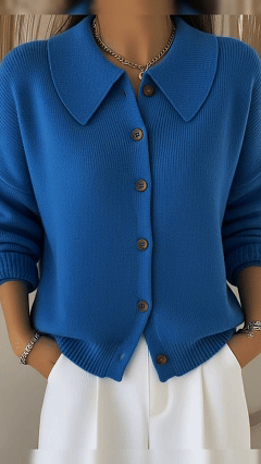 Women's Solid Color Shirt Collar Long Sleeve Knit Cardigan