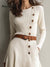 This cream knit midi dress combines classic femininity with a modern twist. Crafted from a soft ribbed knit fabric, it features an elegant round neckline, long sleeves, and a flowing A-line silhouette. The asymmetrical front button placket adds a unique visual touch, while the detachable belt enhances the waistline for a flattering fit. Comfortable yet sophisticated, this piece transitions effortlessly from daytime elegance to evening chic.