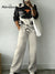 Cute Black And White Cat Decorative Pattern Casual Stand Collar Long Sleeve Top And Elastic Waistband Pants