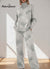 Geometric Vertical Line Decorative Pattern Casual Stand Collar Long Sleeve Top And Pants