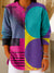 Geometry Color Block Art Pattern Polo Collar Shiny Loose Sweater Top