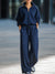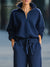 KSXTXX presents the?navy blue loungewear set features a waffle-knit half-zip pullover with a stand collar and matching wide-leg drawstring pants, merging textural sophistication with laid-back comfort. The soft, waffle-knit fabric offers a cozy yet polished fit, while the relaxed silhouette adds a touch of effortless chic. Designed for versatile wear, it?¡¥s a perfect ensemble for transitioning between casual outings and relaxed days.