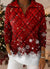 Retro Christmas Gradient Snowflake Art Pattern Polo Collar Shiny Loose Sweater Top