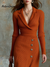 Retro Blazer Collar Button Knitted Mid-length Dress