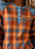 Retro Casual Denim Patchwork Plaid Print Henley Collar Top