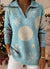 Retro Christmas Snowflake Art Pattern Polo Collar Shiny Loose Sweater Top
