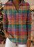 Retro Colorful Gradient Plaid Print Lapel Casual Knit Sweater