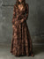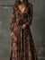 Retro Floral Suede Printed A-line Maxi Dress With Belt