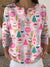 Vintage Christmas Art Print Henley Neck Sparkling Sequin Sweater