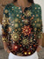 Vintage Christmas Snowflake Art Print Henley Neck Sparkling Sequin Sweater