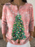 Vintage Christmas Tree Art Print Henley Neck Sparkling Sequin Sweater