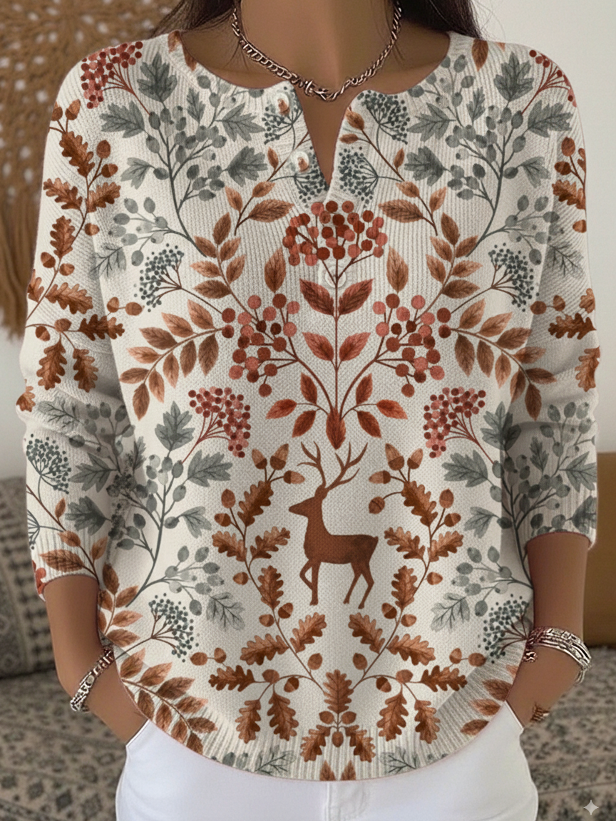 Women's Retro Print Round Neck Long Sleeve Casual Loose Knit Dress