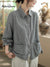 Plus Size Women Autumn Stripe Turn-down Collar Cotton Shirt