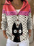 Women's Abstract Color Block Polka Dot Cat Painting Art Print Casual Hooded Button Sweater