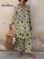 Women's Art Circle Print Shirt and Pants Cotton Two-Piece Set
